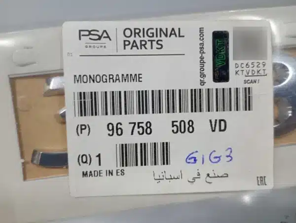 01 – Emblema Letreiro “308” da Tampa Traseira Original Peugeot – 96758508VD